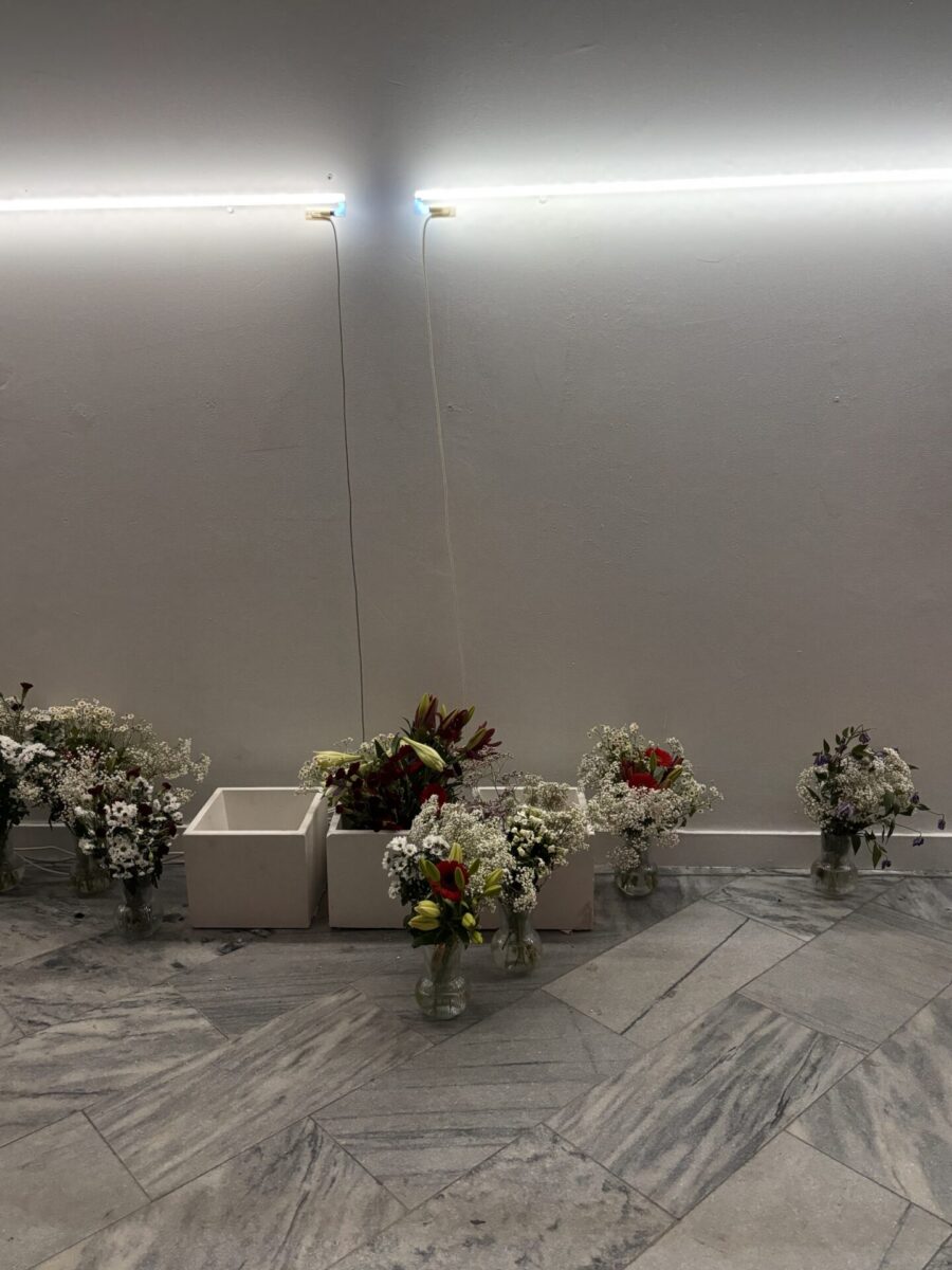 Was man hier macht: Sich eine halbe Stunde lang über sämtliche Texte beugen und trotzdem nicht verstehen, was zur Hölle eigentlich gemeint ist, in dunklen Hallen vor schwerer, bedrückender Kunst und anstrengenden Klanginstallationen stehen und so tun, also würde man alles verstehen oder über seine strapazierte Ost-Seele sinnieren.